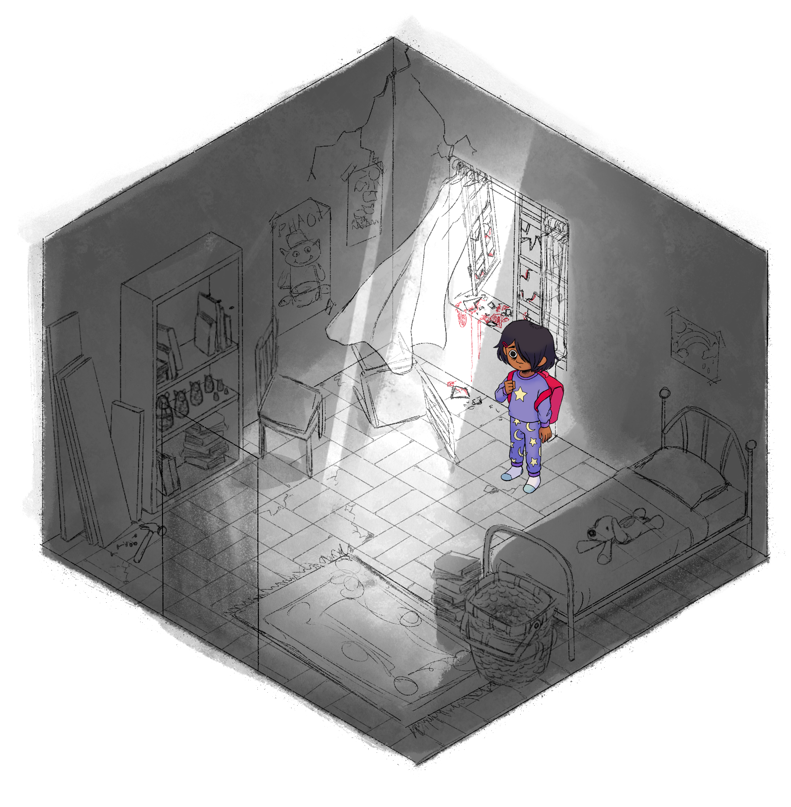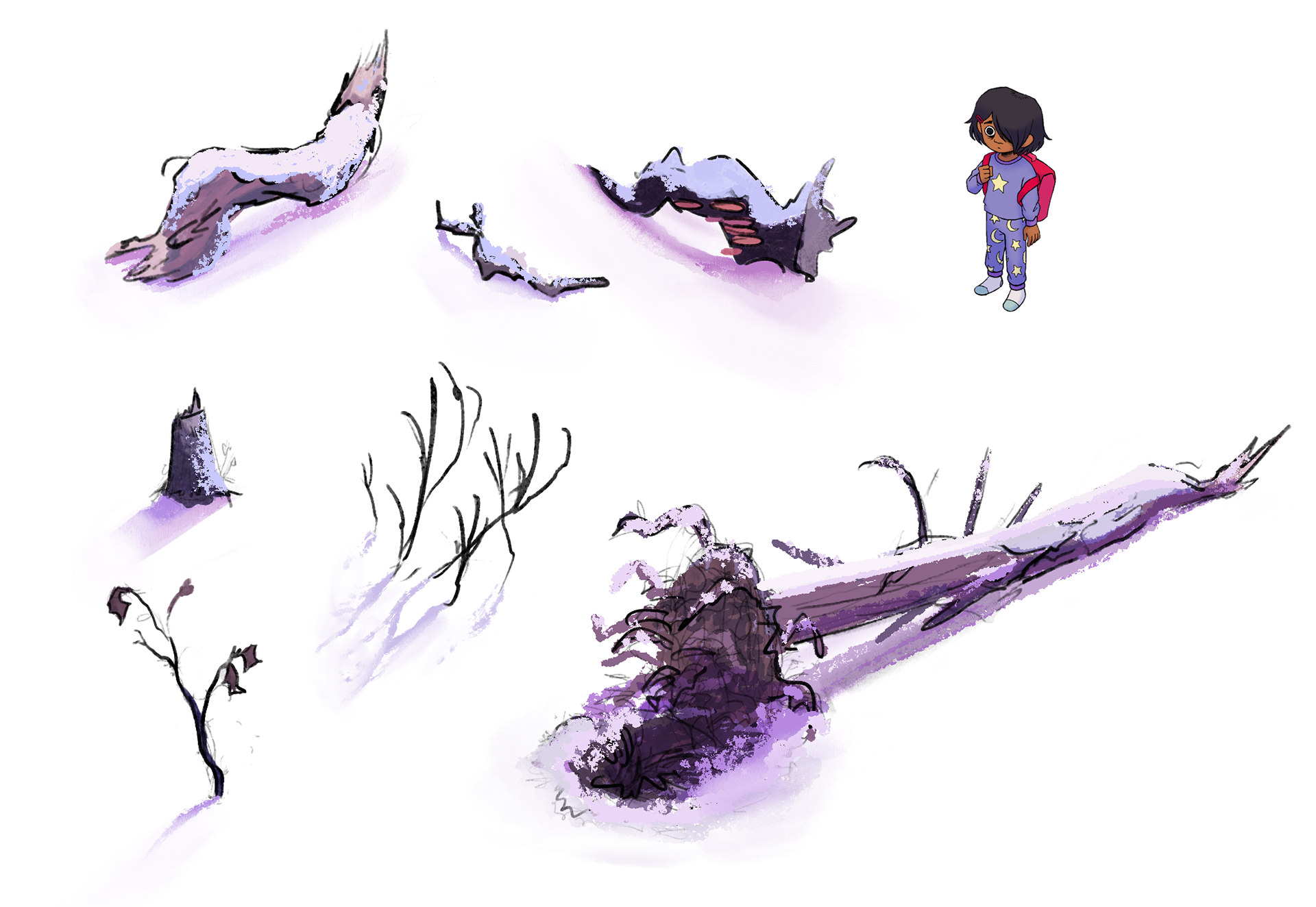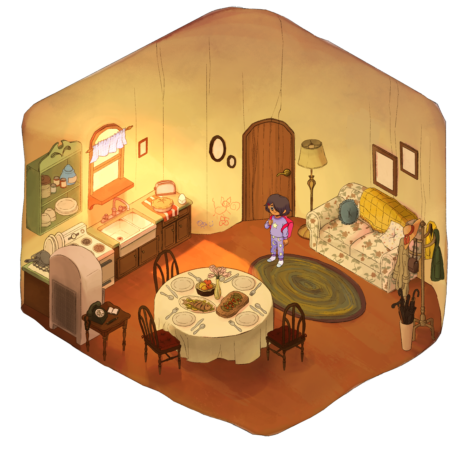 Early concept for the player's cottage, the safe haven they return to after traveling through the forest.